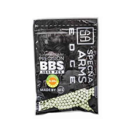 Billes de précision Specna Arms EDGE™ Les billes de précision de marque Specna Arms® de la série professionnelle EDGE™. Sa large offre comprend des munitions de la plus haute qualité pour les répliques d'airsoft, fabriquées par de véritables experts dans le domaine des BB de précision - la marque taïwanaise BLS. Le diamètre du BB est de 5,95 mm (+/- 0,005 mm) et les différences de poids de chaque BB ne dépassent pas 0,01 g. De ce fait, les billes de la série EDGE™ seront parfaites pour les répliques tunées équipées de canons de précision. Chaque BB est soigneusement poli pour un brillant élevé au stade final du traitement. Ensuite, ils sont recouverts d'une couche spéciale qui réduit les frottements pour assurer une coopération sans problème avec des canons de précision. Cela permet au BB de mieux fonctionner avec le tronçonnage Hop-Up. Grâce à la maîtrise totale du processus de fabrication, le résultat final est un BB parfaitement sphérique, sans aucune imperfection. Le centre de gravité bien réparti combiné à l'absence de chambres à air à l'intérieur du BB permettent une excellente répétabilité des tirs.