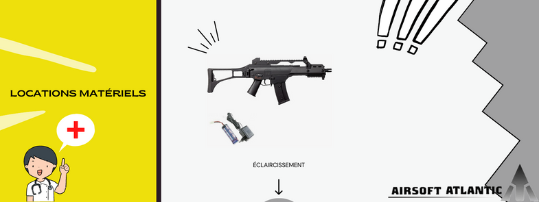 Vous pouvez louer le matériel directement à la Boutique Airsoft Atlantic à Bordeaux ou en ligne depuis notre site web.