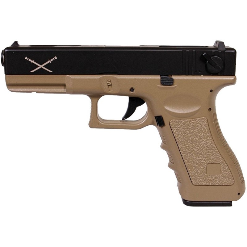 AEP : (Automatique Electric Pistol) : Réplique d’arme de poing tirant en coup par coup (mode semi-automatique) ou par rafale, et fonctionnant sur batterie. Tout comme un AEG, l’AEP peut tirer en mode full auto, mais la culasse reste fixe.