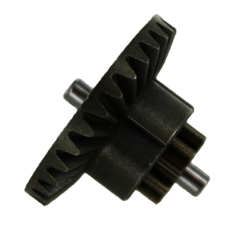 Bevel Gear : Engrenage entrainé par le pignon moteur et entrainant la spur gear. Cette gear a pour fonction de renvoyer l'angle de l'axe moteur à 90°