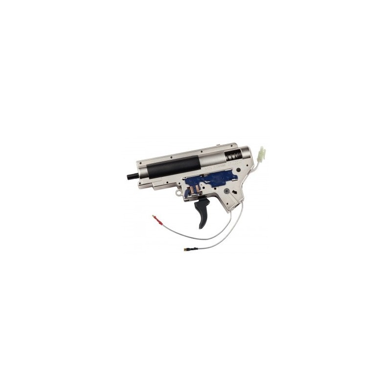 Gearbox : Mot anglais désignant le boîtier contenant le mécanisme d'un AEG, en métal, plus rarement en plastique. Il contient généralement les trois engrenages (gears) démultipliant la puissance du moteur (qui peut être ou non intégré à la gearbox), un piston, un ressort ainsi que d'autres éléments.