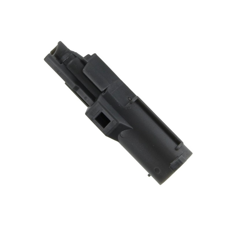 Nozzle : Pièce mécanique interne qui sert à pousser la bille du chargeur dans le bloc hop-up et créer un lien pneumatique étanche entre la tête de cylindre et le bloc hop-up.