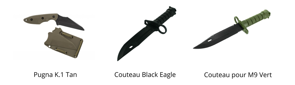 Ces différents types de couteaux se trouvent en différents matières comme :