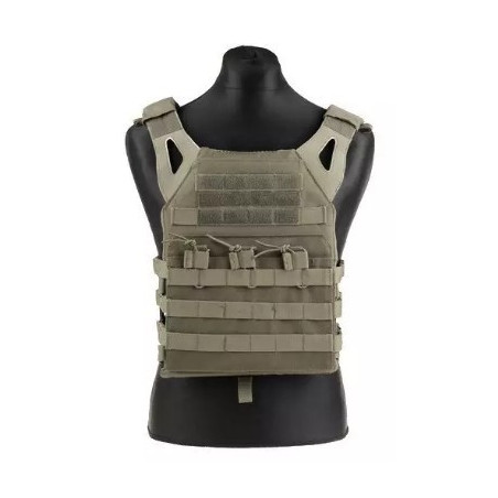 Gilet tactique de type saut Un gilet de type porte-plaques très léger et fonctionnel, fabriqué à partir de nylon résistant. Il est composé de deux panneaux - avant et arrière, qui sont reliés par une ceinture squelettique légère, constituée uniquement de sangles renforcées. Ces sangles peuvent également contenir des accessoires et des pochettes supplémentaires. Le porte-plaque comprend une pochette de munitions universelle intégrée qui contient 3 chargeurs de type M4/M16 ou AK. Les magazines sont sécurisés avec des élastiques avec poignées - une telle conception permet un changement rapide de magazine et maintient également les magazines fermement à l'intérieur de la pochette. Grâce aux copains du système modulaire MOLLE, des pochettes supplémentaires peuvent être installées sur le gilet - sur les panneaux avant et arrière. Le gilet a deux pochettes pour inserts balistiques de taille moyenne. Deux répliques de ces inserts (en mousse épaisse) sont incluses. Sur la poitrine, il y a une poche plate avec des panneaux auto-agrippants cousus - utile pour ajouter des patchs, des badges, etc. Le gilet est entièrement réglable, il peut être réglé pour répondre à tous les besoins et préférences de l'utilisateur. Les accessoires supplémentaires présentés sur les photos ne sont pas inclus dans le kit !